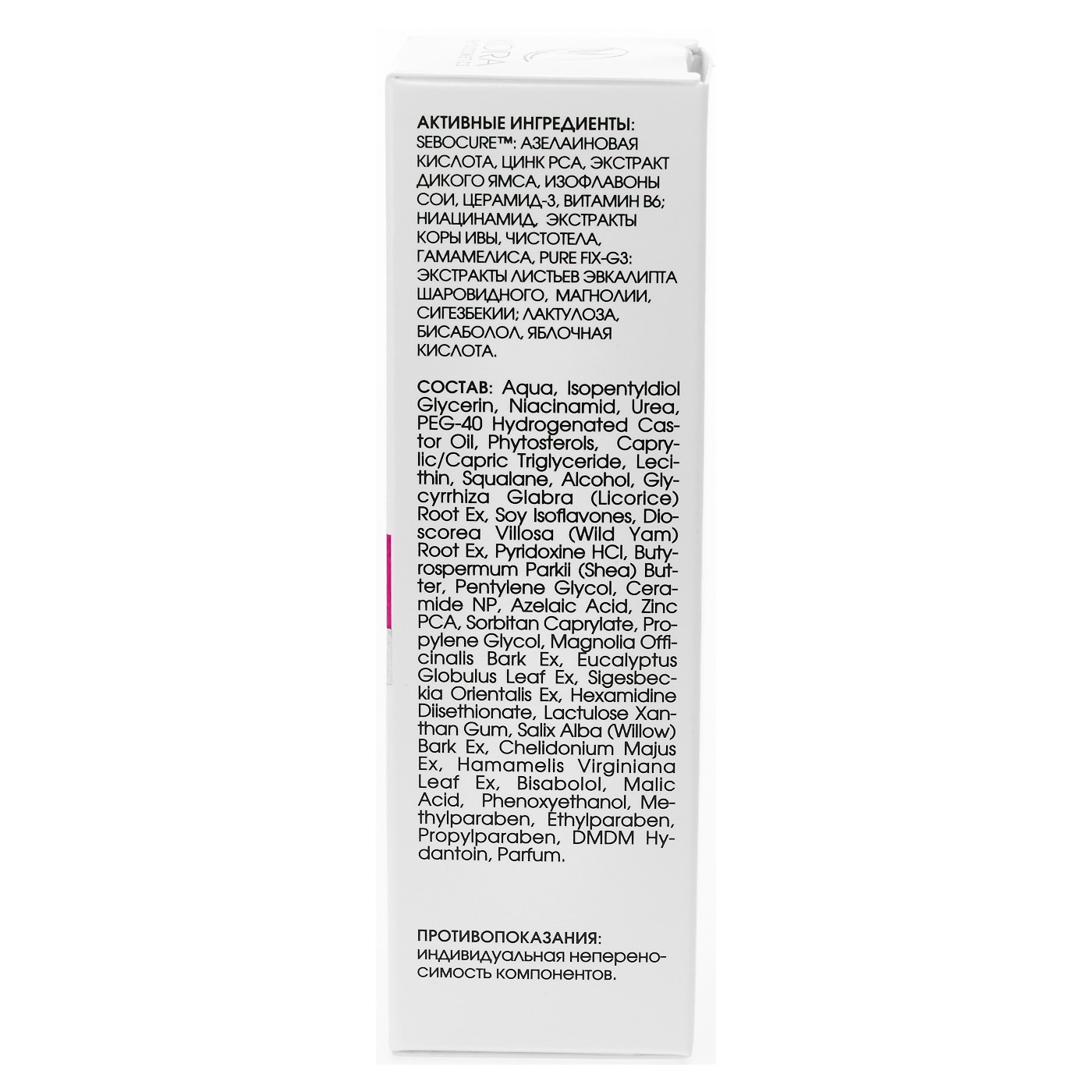 - Sebocure (липосомальный комплекс интенсивного действия) в сочетании с ниацинамидом снижает секрецию кожного сала, оказывает противовоспалительный, кератолитический и антибактериальный эффект, предотвращает появление воспалительных элементов