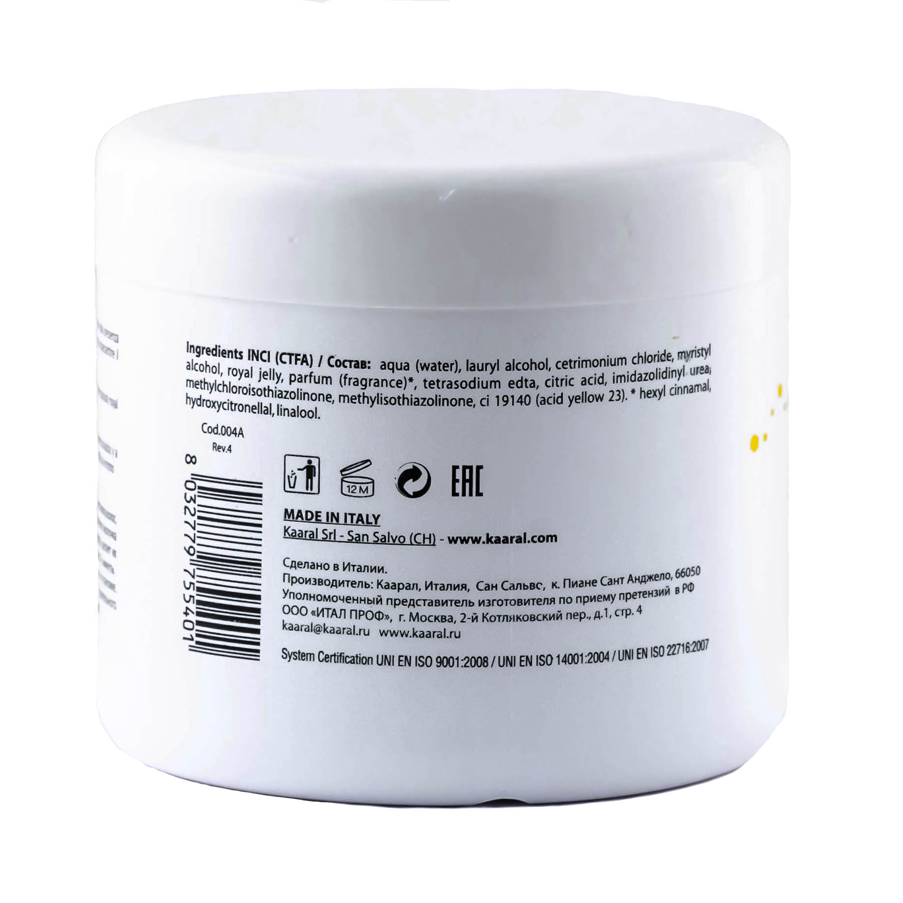 Royal Jelly Cream Питательная крем-маска для волос с маточным молочком 500 мл KAARAL