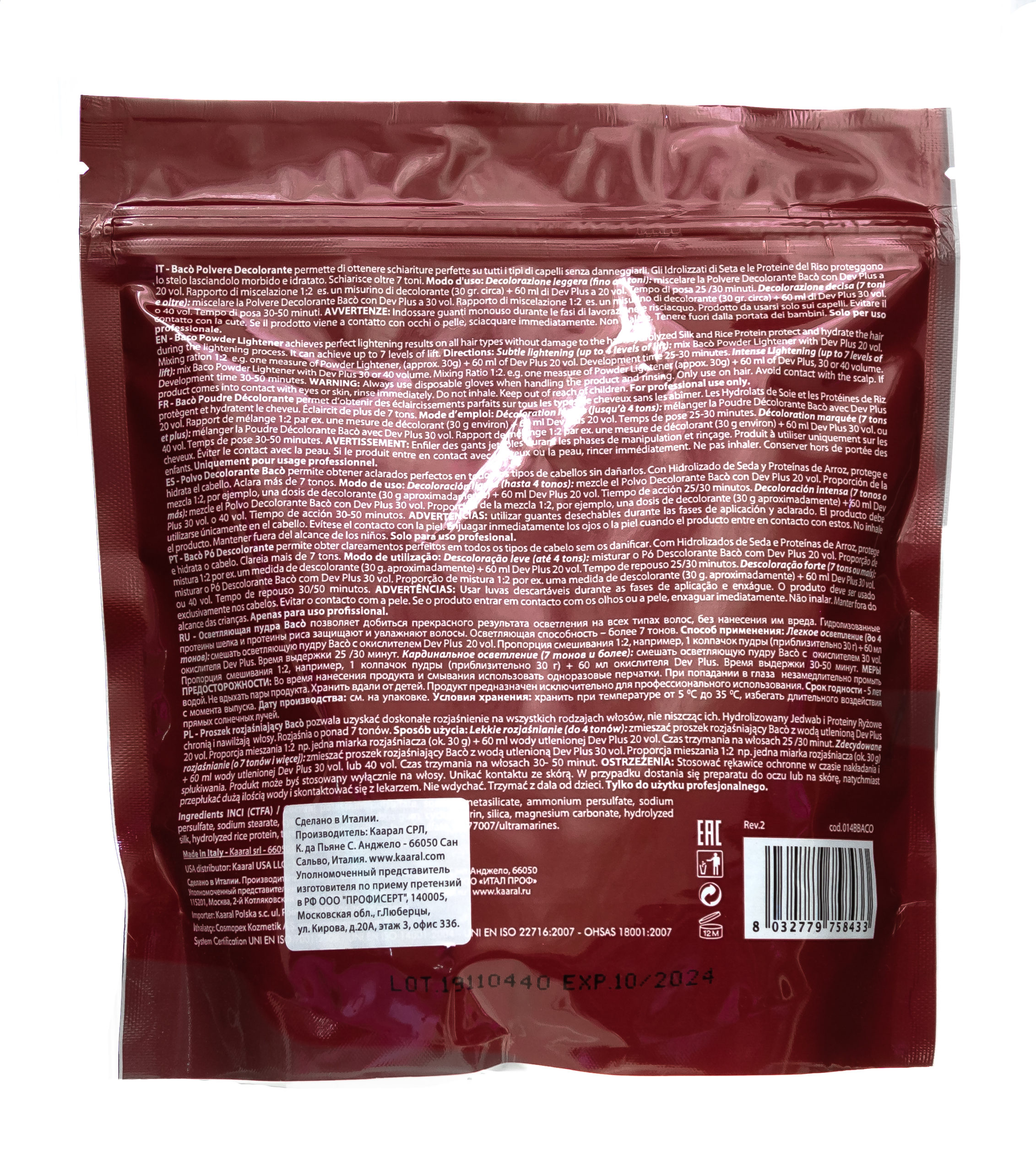 KP_014B/BACO, Пудра д волос осветляющая BACO Powder Lightener Blue 500гр (жесткий пакет), KAARAL
