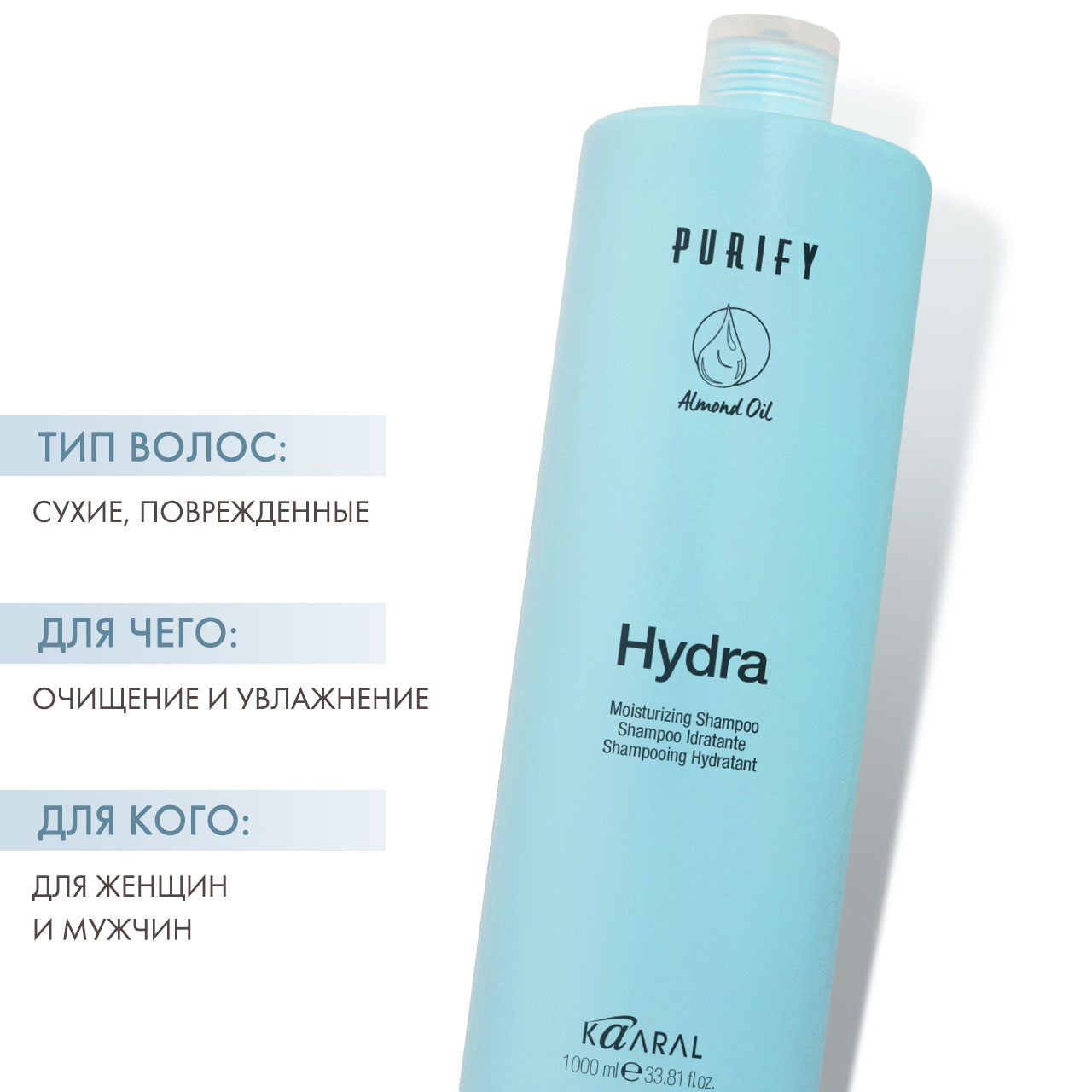 Hydra Moisturizing Shampoo Шампунь увлажняющий для сухих волос 1000 мл KAARAL 1202