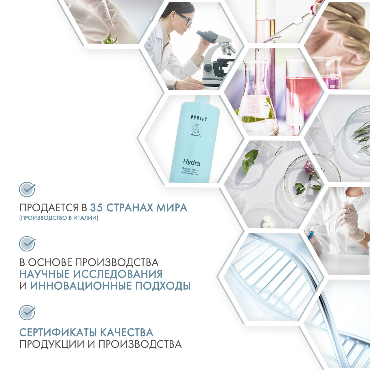 Шампунь великолепно работает в дуэте с кондиционером для сухих волос Purify Hydra Conditioner. Результат домашнего ухода порадует и впечатлит вас. Волосы приобретают невероятный блеск и силу.