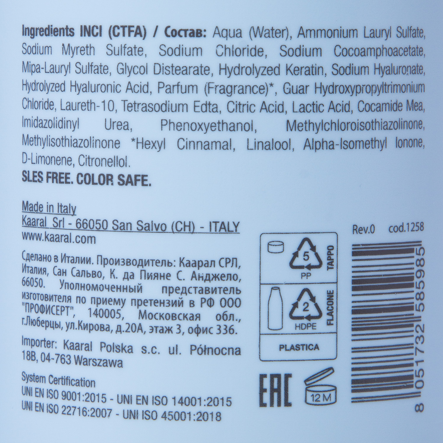 KP_1258, FILLER SHAMPOO-Шампунь для придания плотности волосам 1000 мл, KAARAL