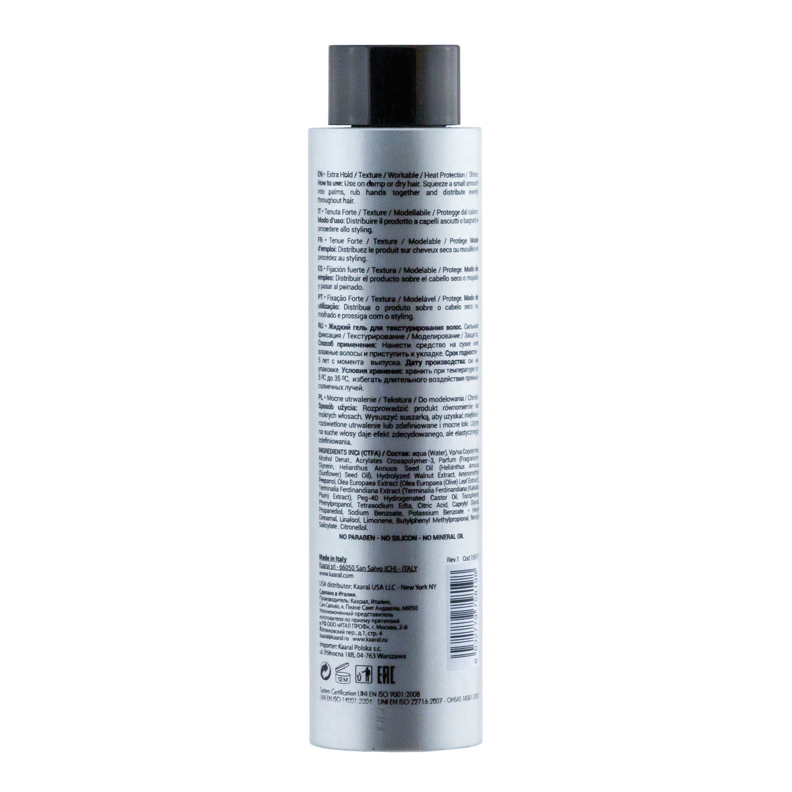 Жидкий гель для текстурирования волос с сильной моделируемой фиксацией придает текстуру, форму и защиту волосам. Не содержит парабенов и минеральных масел. Показания к применению: Обеспечивает мягкость и эффект мокрых волос. Основные активные компоненты: Витамин Е, слива какаду, зеленый орех. Способ применения: Равномерно распределите средство руками на мокрых волосах. — высушить феном для мягкой и блестящей фиксации для создания выраженных и крепких завитков. Сухим волосам придает четкую но эластичную форму. *Внешний вид товара может отличаться от фотографий на сайте.