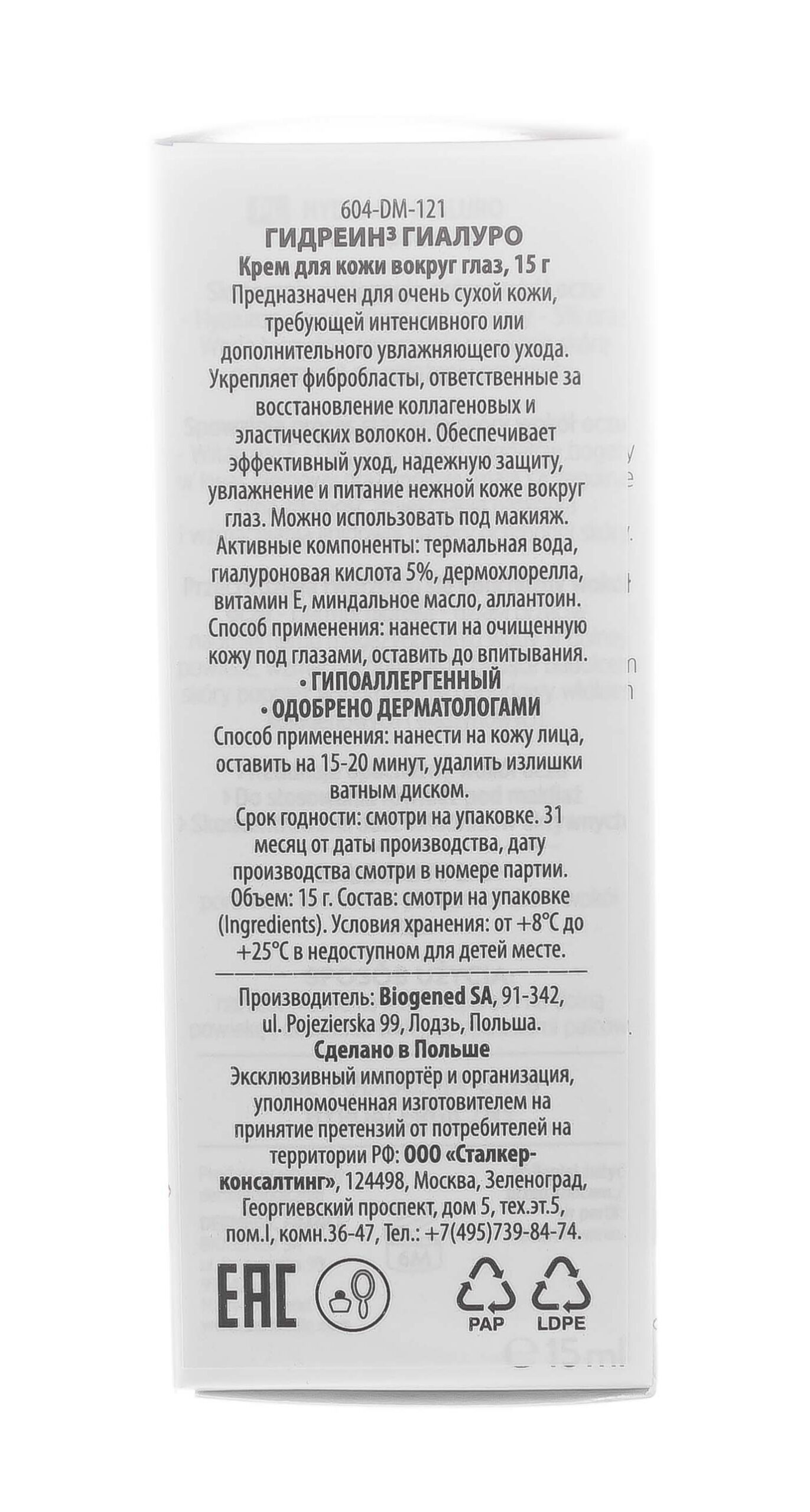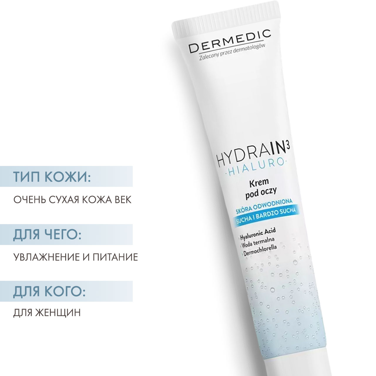 Крем для кожи вокруг глаз ДЕРМЕДИК ГИДРЕИН 3 ГИАЛУРО, 15 мл