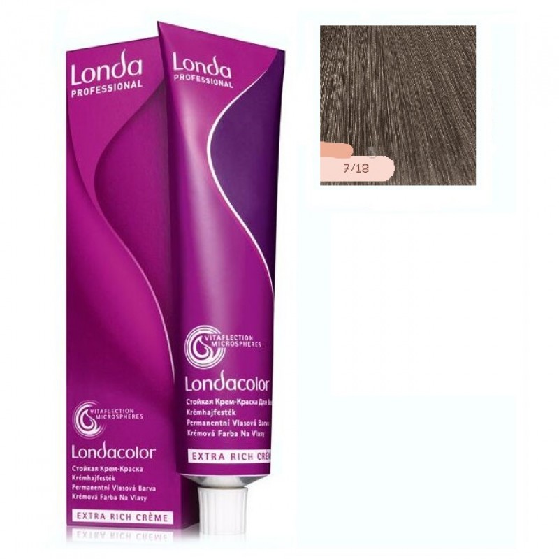 Краска для волос Лондаколор-400 7/18, жареный миндаль, 60 мл, LONDACOLOR Стойкая крем-краска, LONDA