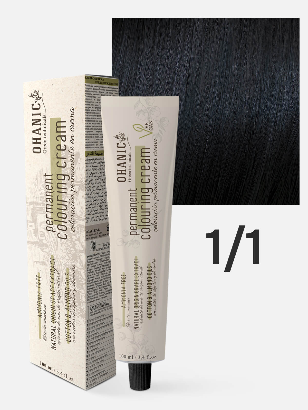 OHANIC GREEN TECHNICALS Крем-краска безаммиачная для волос PERMANENT COLOURING CREAM AMMONIA FREE 1.1 сине-черный 100мл