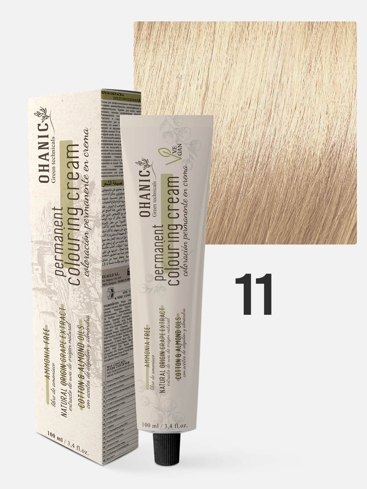OHANIC GREEN TECHNICALS Крем-краска безаммиачная для волос PERMANENT COLOURING CREAM AMMONIA FREE 11 суперосветляющий натуральный блонд 100мл