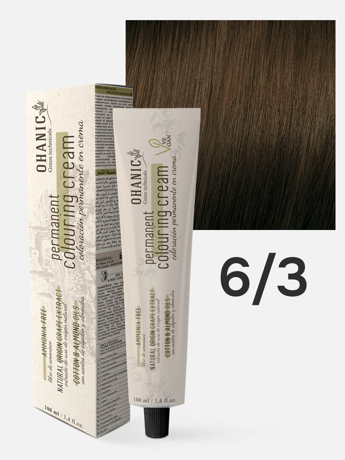 OHANIC GREEN TECHNICALS Крем-краска безаммиачная для волос PERMANENT COLOURING CREAM AMMONIA FREE 6.3 темный блонд золотистый 100мл