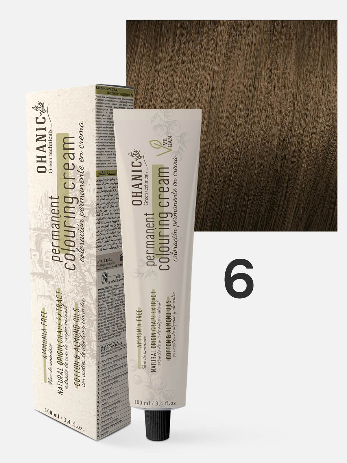OHANIC GREEN TECHNICALS Крем-краска безаммиачная для волос PERMANENT COLOURING CREAM AMMONIA FREE 6 темный блонд натуральный 100мл