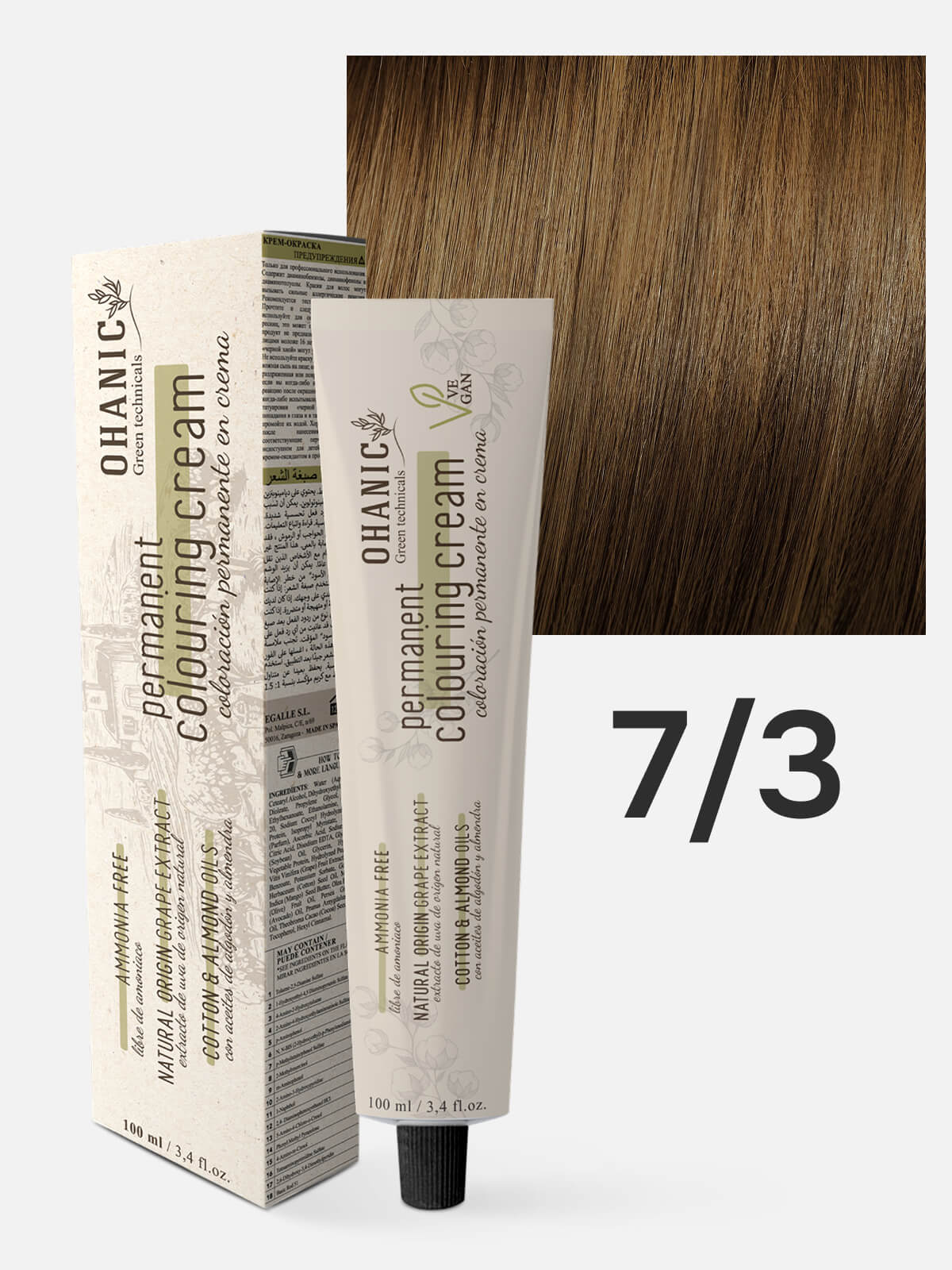 OHANIC GREEN TECHNICALS Крем-краска безаммиачная для волос PERMANENT COLOURING CREAM AMMONIA FREE 7.3 блонд золотистый 100мл