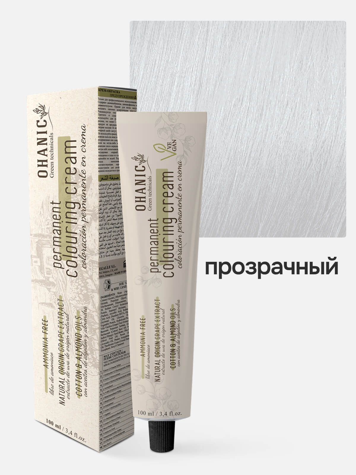 OHANIC GREEN TECHNICALS Крем-краска безаммиачная для волос PERMANENT COLOURING CREAM AMMONIA FREE CLEAR бесцветный микстон 100мл