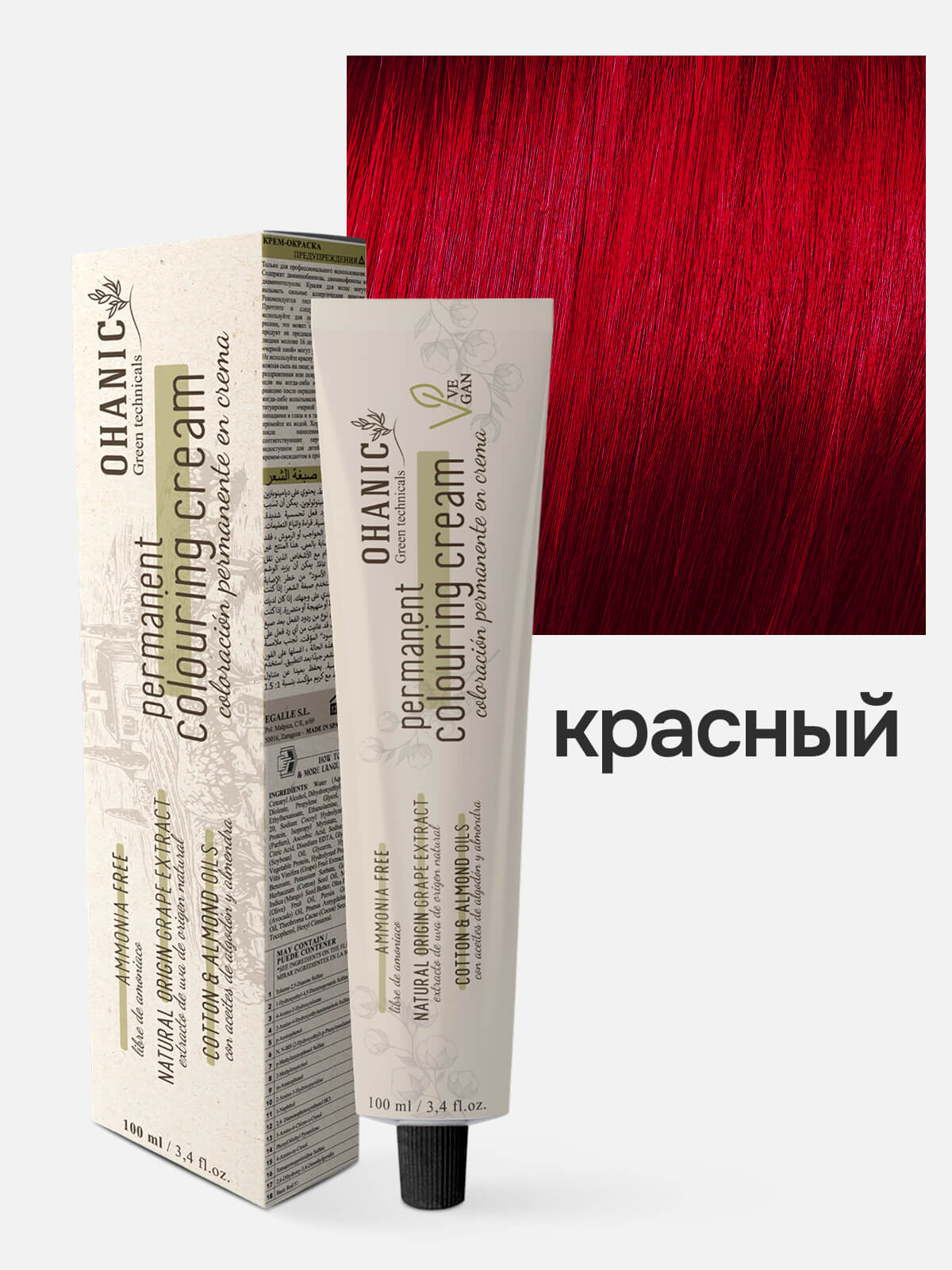 OHANIC GREEN TECHNICALS Крем-краска безаммиачная для волос PERMANENT COLOURING CREAM AMMONIA FREE RED красный микстон 100мл