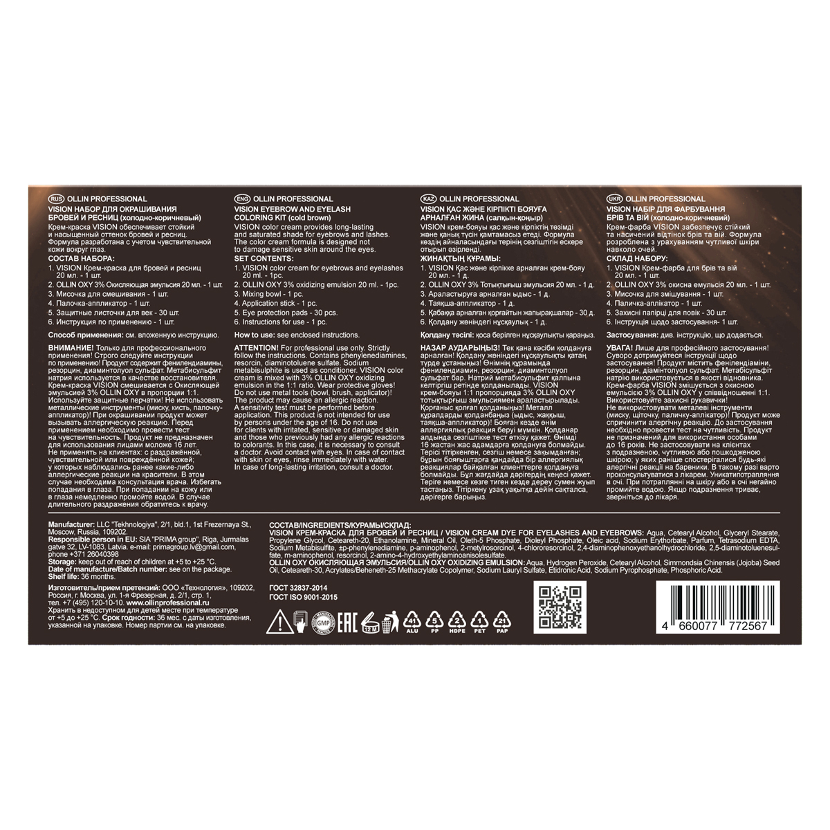 Vision Набор для окрашивания бровей и ресниц Холодно-коричневый OLLIN 772567