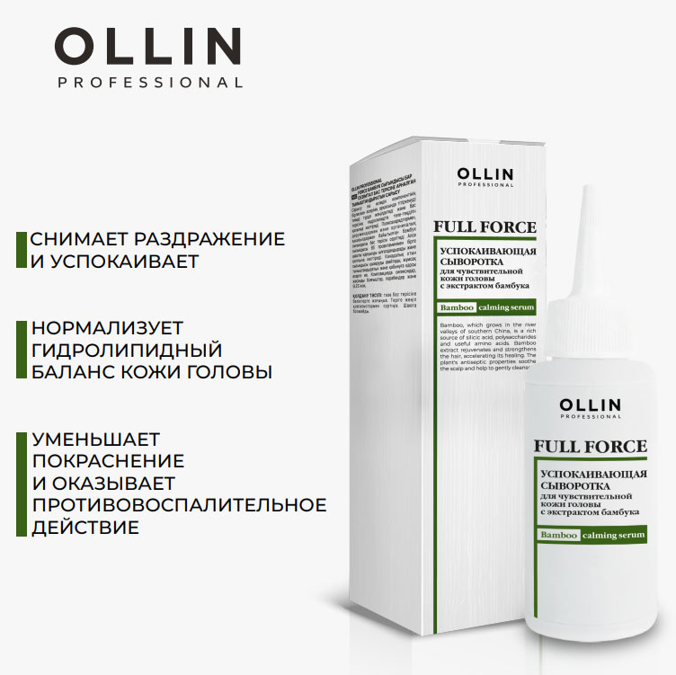 Ollin Professional Full Force Успокаивающая сыворотка для чувствительной кожи головы с экстрактом бамбука 80 мл