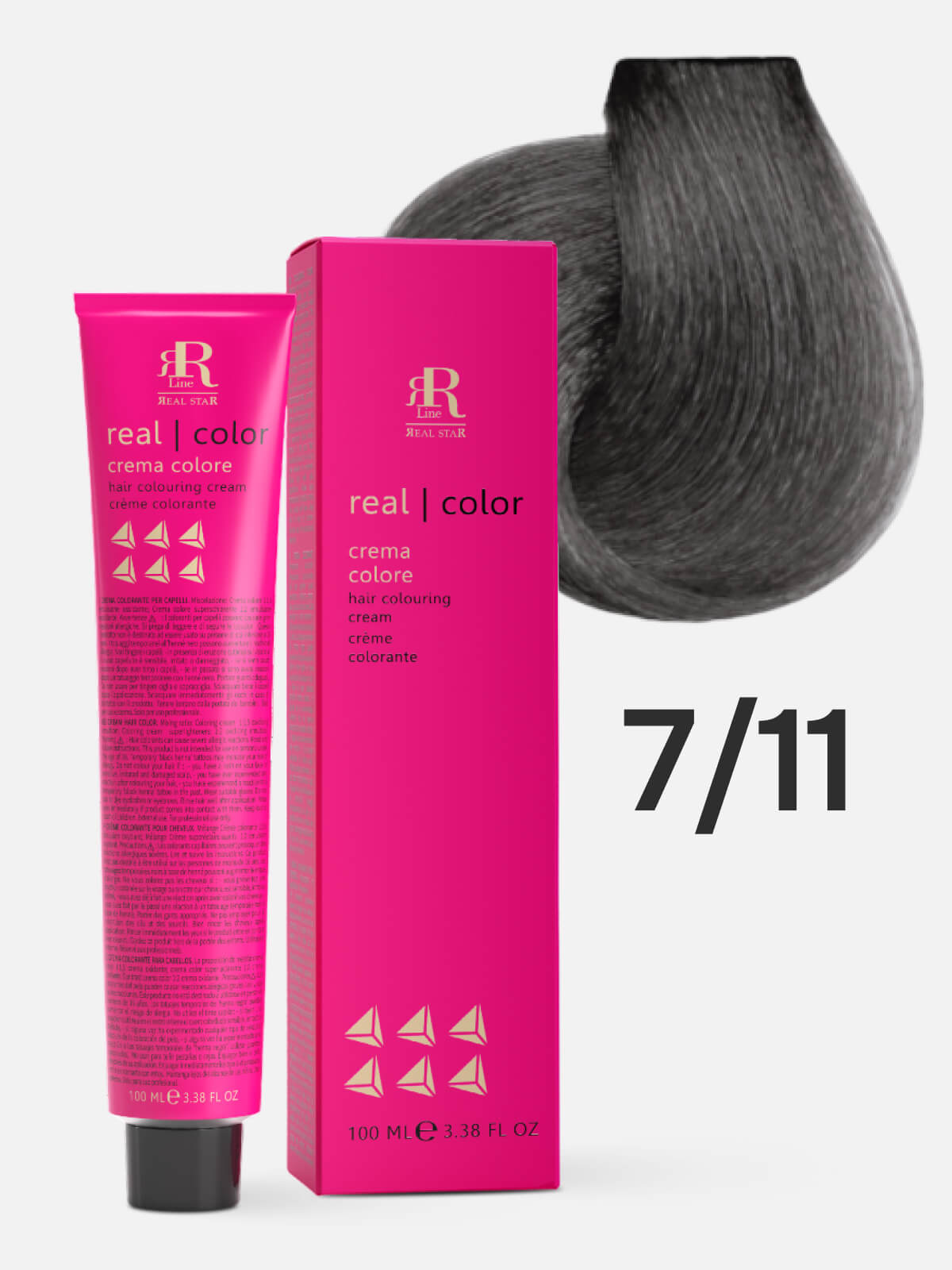 RR LINE REAL STAR Крем-краска для окрашивания волос REAL COLOR PROFESSIONAL HAIR COLOURING CREAM 7.11 русый интенсивный пепельный 100мл