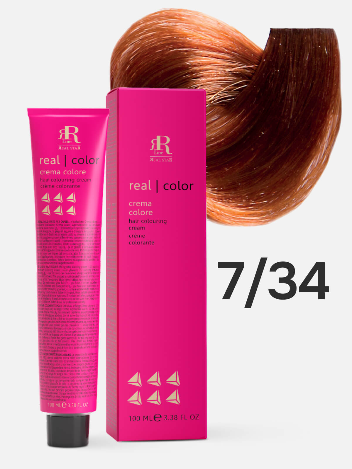 RR LINE REAL STAR Крем-краска для окрашивания волос REAL COLOR PROFESSIONAL HAIR COLOURING CREAM 7.34 русый золотисто-медный 100мл