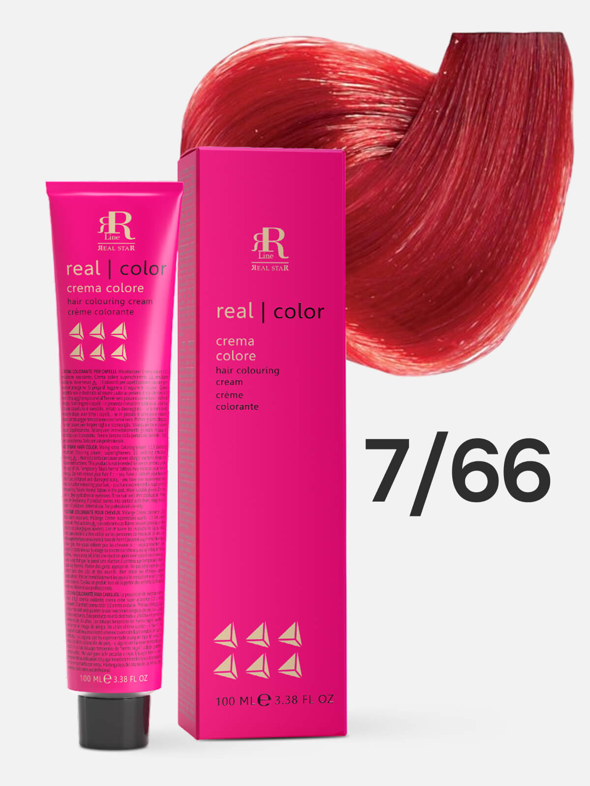RR LINE REAL STAR Крем-краска для окрашивания волос REAL COLOR PROFESSIONAL HAIR COLOURING CREAM 7.66 русый интенсивный красный 100мл