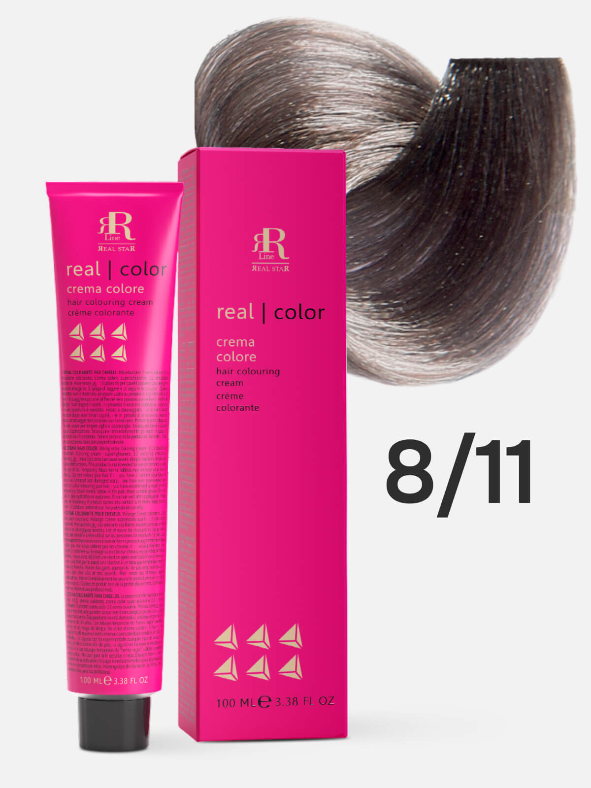 RR LINE REAL STAR Крем-краска для окрашивания волос REAL COLOR PROFESSIONAL HAIR COLOURING CREAM 8.11 светлый русый интенсивный пепельный 100мл