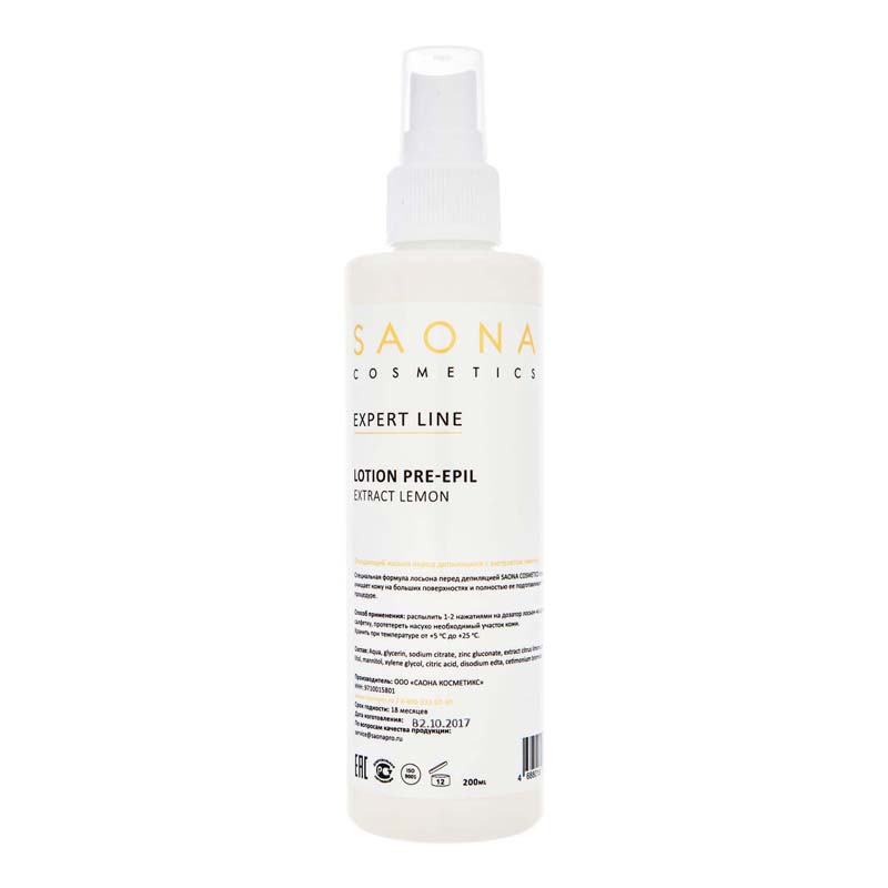 Очищающий лосьон Saona Cosmetics линейки Expert Line с экстрактом лимона имеет специальную формулу, которая прекрасно очищает и обезжиривает кожу, полностью подготавливая ее к процедуре депиляции. Активные ингредиенты: Экстракт лимона. Применение: Распылить небольшое количество лосьона на кожу и протереть сухой салфеткой.
