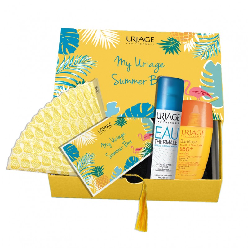 URIAGE Bariesun Набор Летняя коробочка с веером (SPF50+ Ультралегкая эмульсия 30 мл + Терм.вода 50 мл + Веер + открытка)