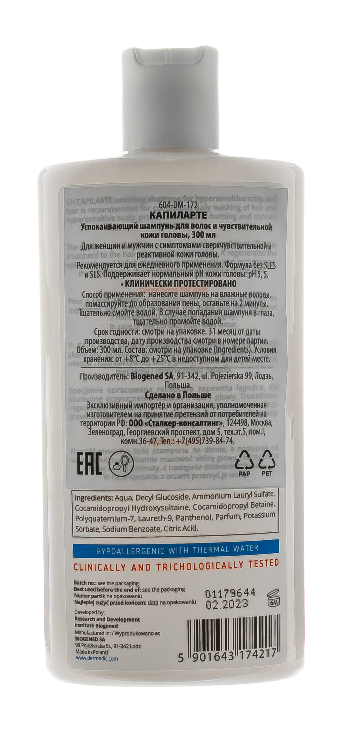 Успокаивающий шампунь для волос и чувствительной кожи головы ДЕРМЕДИК КАПИЛАРТЕ, 300 мл