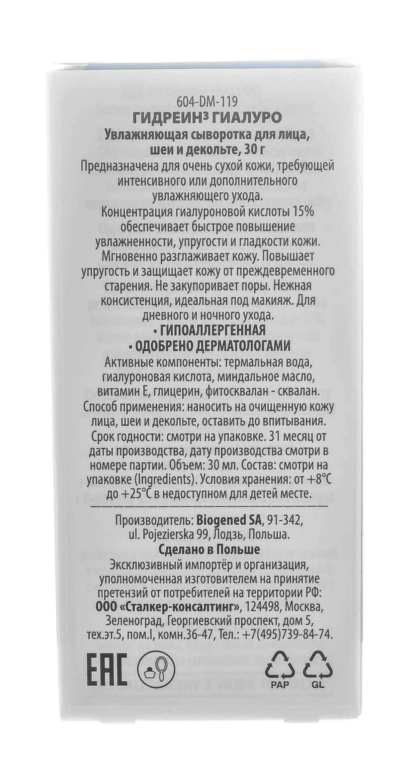 Увлажняющая сыворотка для лица, шеи и декольте ДЕРМЕДИК ГИДРЕИН 3 ГИАЛУРО, 30 мл